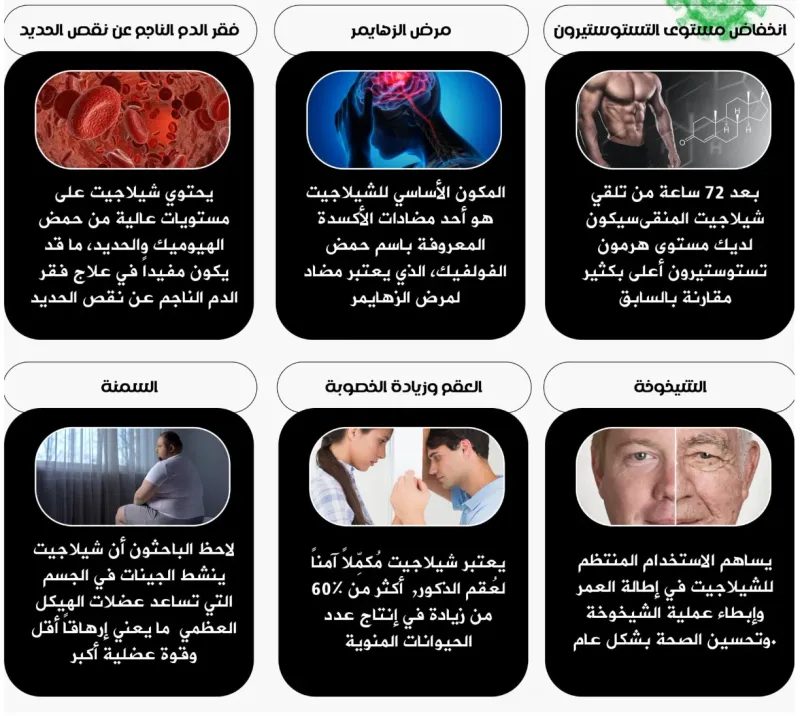 الشيلاجيت هو مادة لزجة سوداء تشبه القَطرَان، تأتي من الصخور في سلاسل الجبال العالية، مثل هيمالايا والتبت، وتتشكل نتيجة لعملية طويلة من تكسير المواد النباتية والمعادن و تصبح صلبة . ويعتبر شيلاجيت واحداً من العديد من التركيبات المستخدمة في نظام الطب الهندي التقليدي القديم المعروف باسم الأيورفيدا. تم استخدام الشيلاجيت في طب الأعشاب التقليدي لعلاج مجموعة متنوعة من الحالات الصحية، بدءاً من كسور العظام وحتى العجز الجنسي، عن طريق استخدامه مكملاً غذائياً